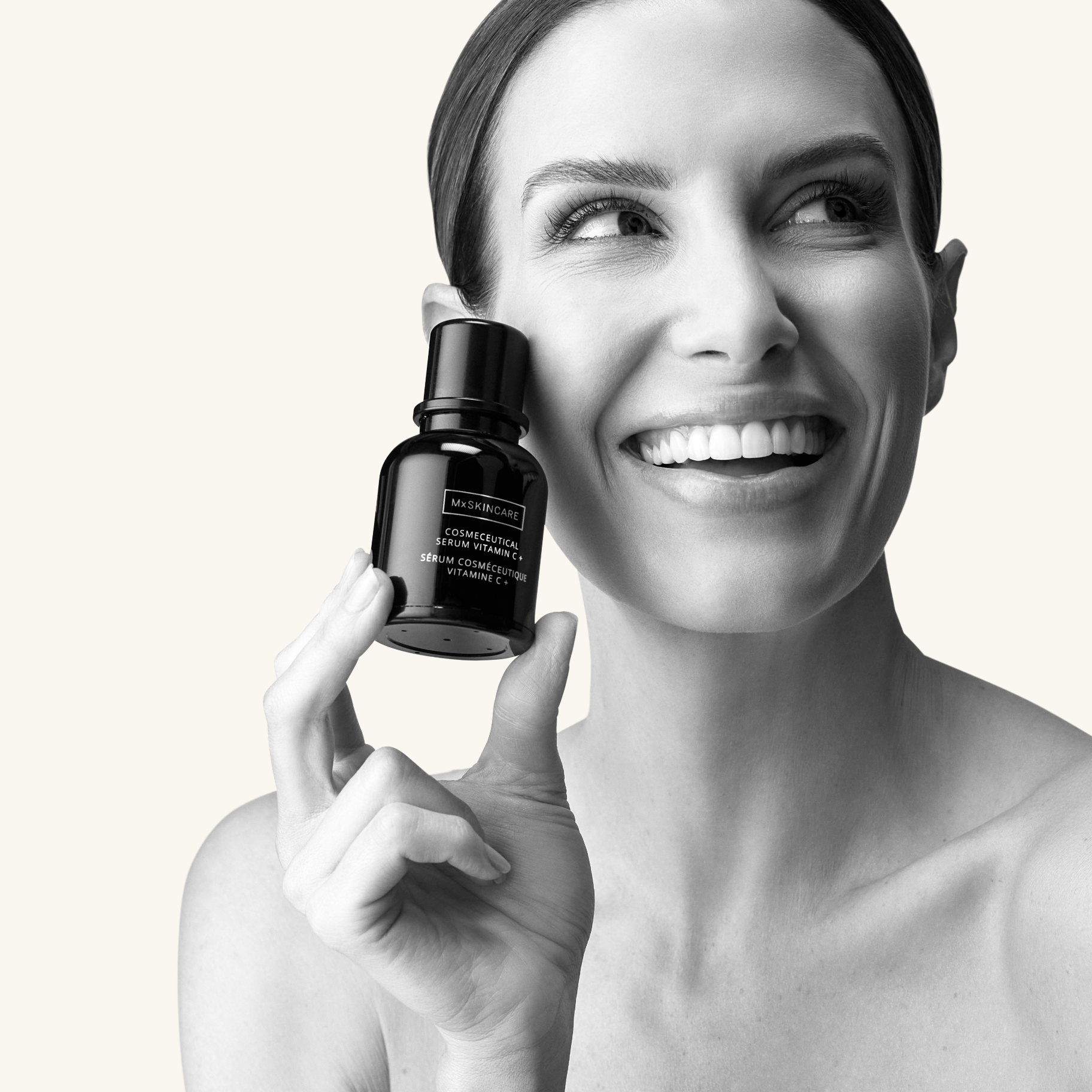Mx Cosmeceutical Serum Vitamin C+ is formulated using a lipid-soluble compound that allows ascorbic acid (Vitamin C) to easily enter the cell membrane. Once inside the skin cell, ascorbic acid boosts collagen and elastin production, and controls melanin production, to improve the look and feel of skin.