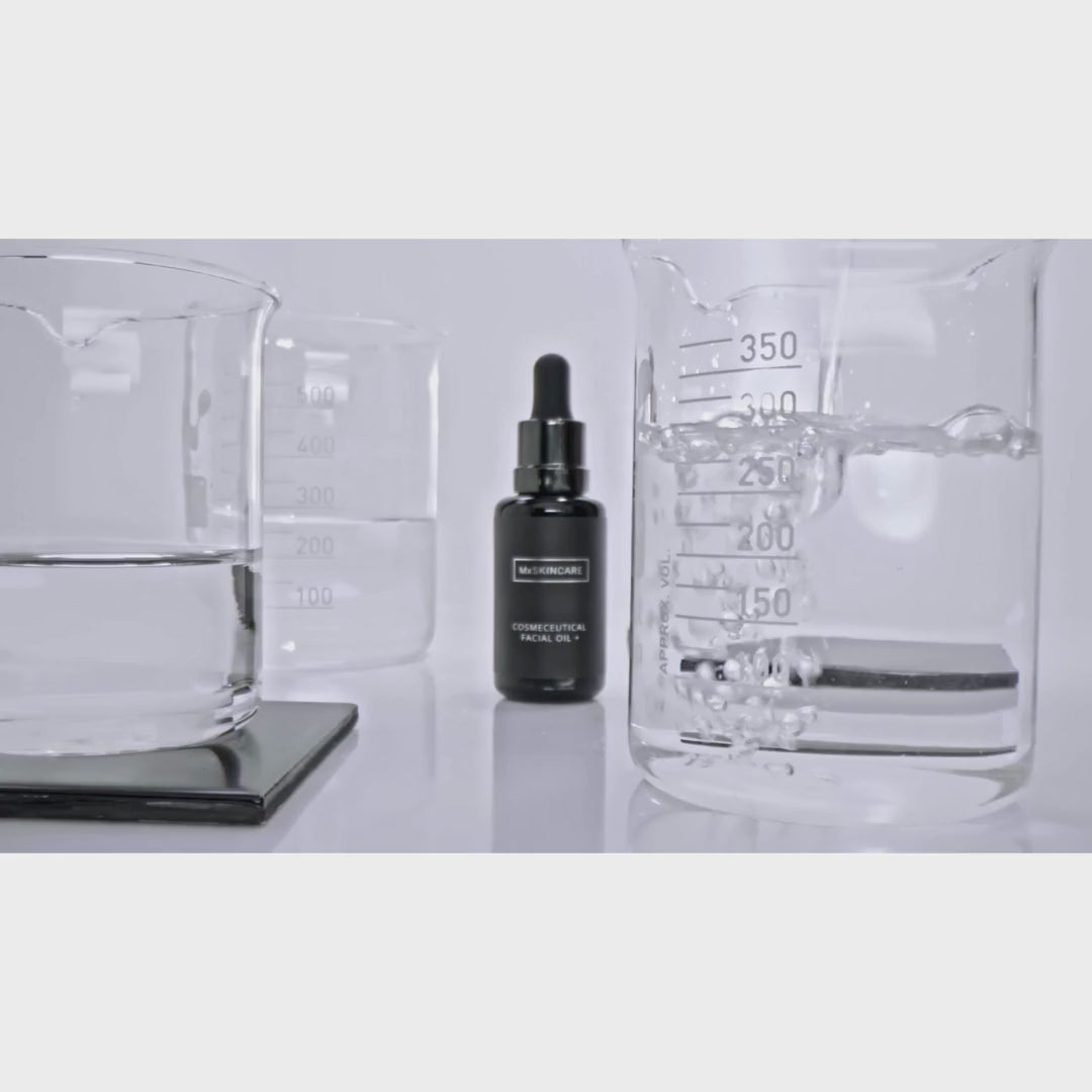 Mx Cosmeceutical Facial Oil + works with your skin, not against it. Containing active ingredients of Vitamins A, C and CoEnzyme Q10, scientifically proven ingredients known for their ability to improve the skin's elasticity and firmness.